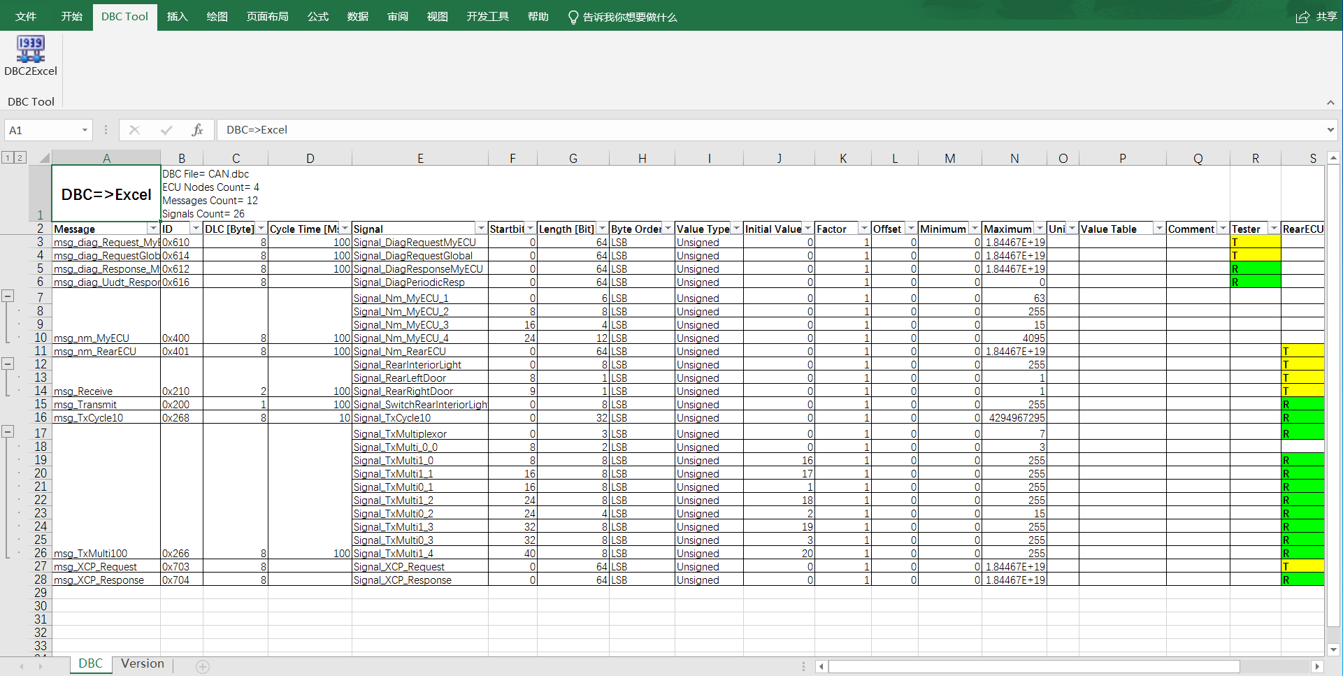 | File | ECU Nodes | Messages | Signals | Elapsed time(s) |